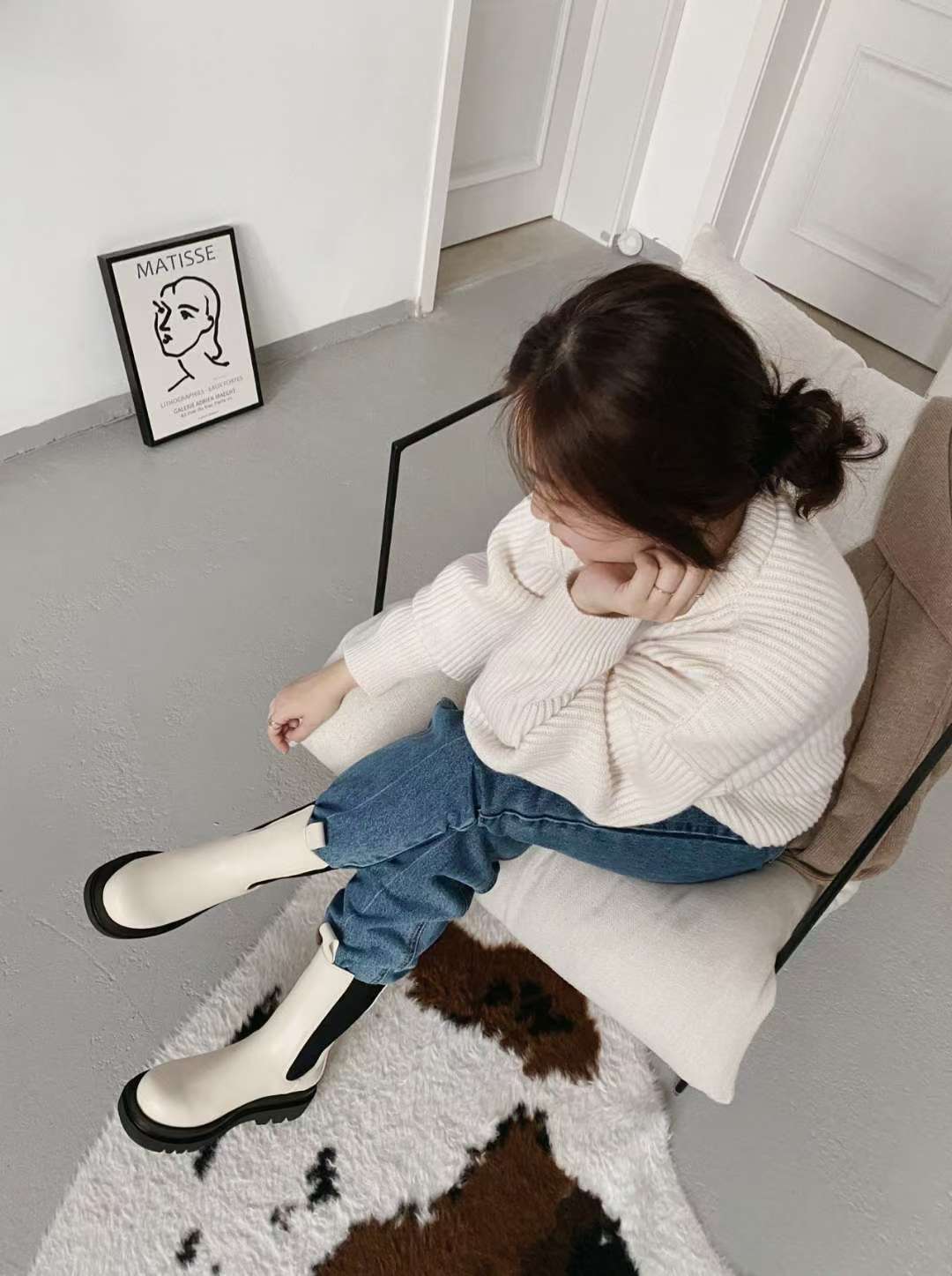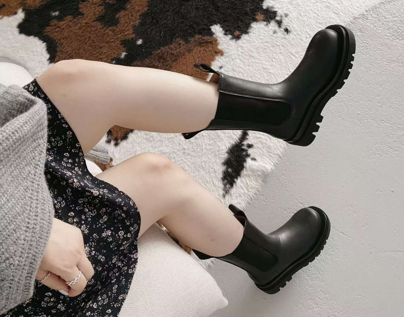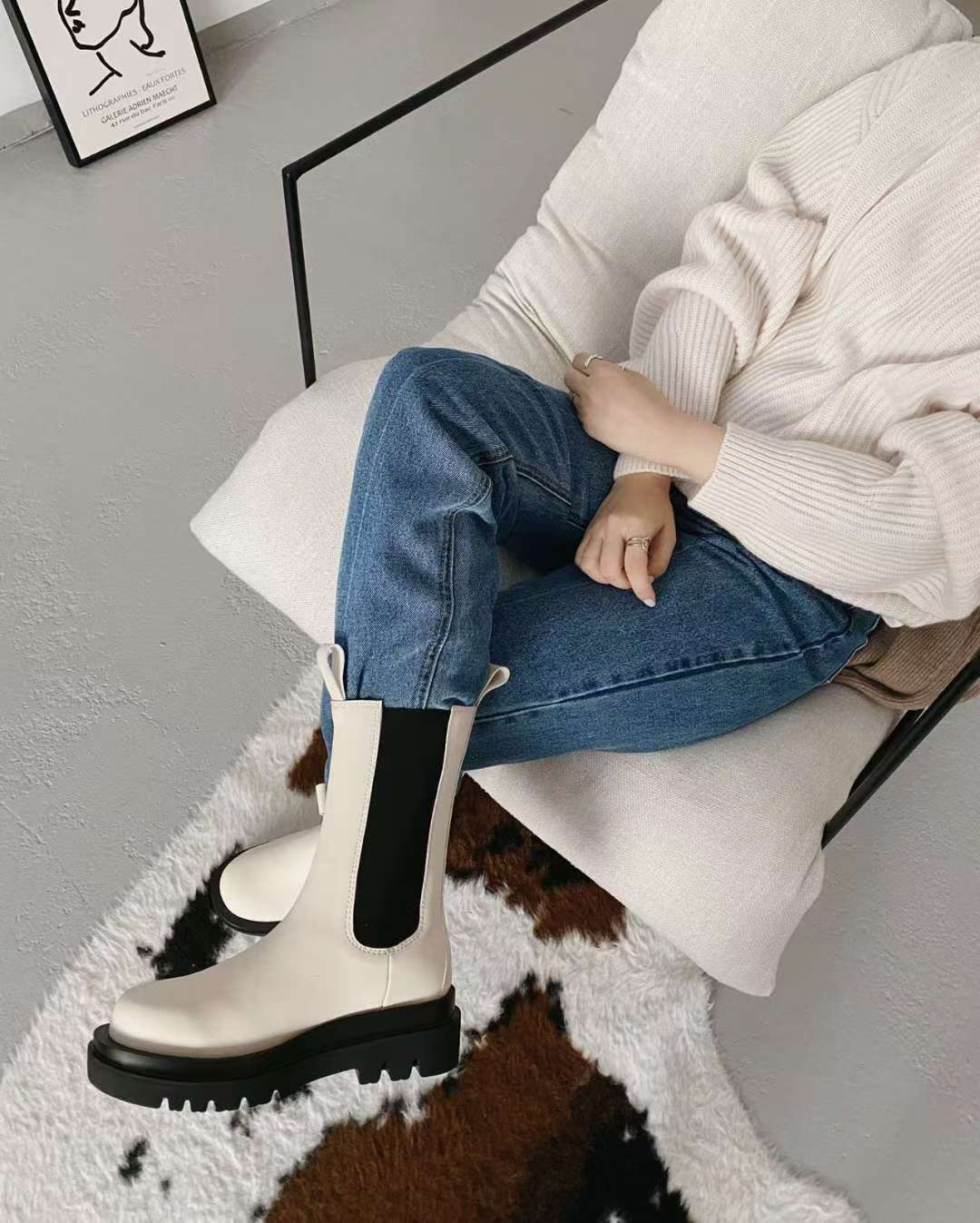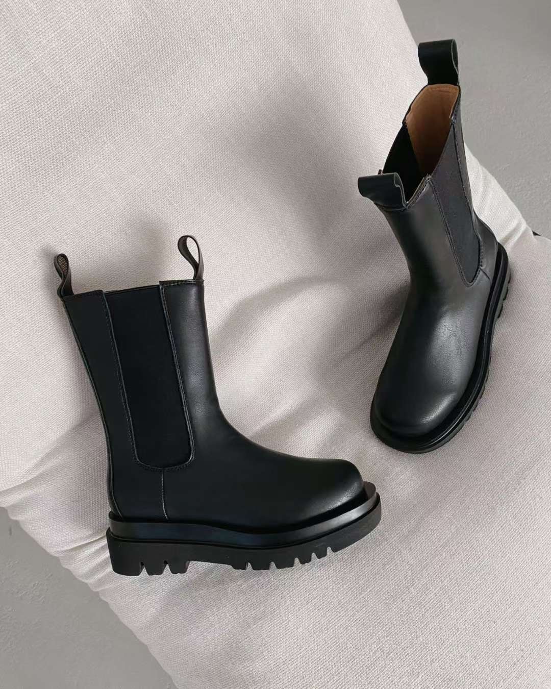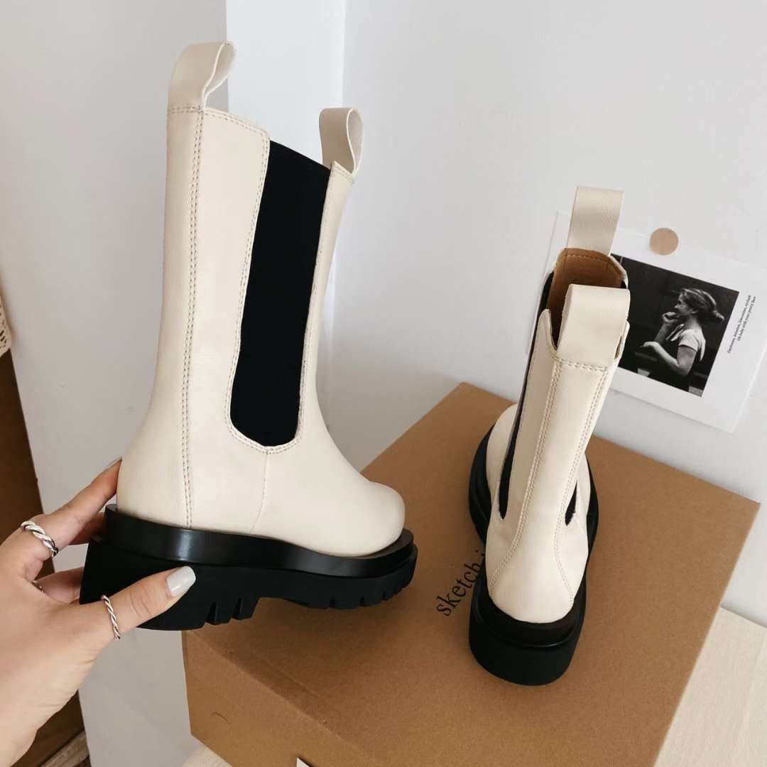 NK407 真皮彈力中筒靴