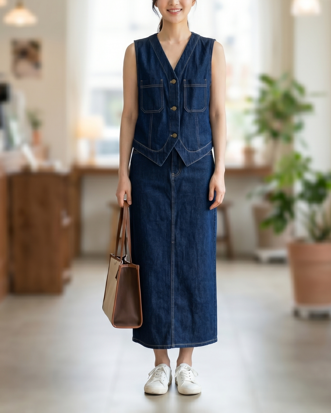 NK554 牛仔背心長裙套裝