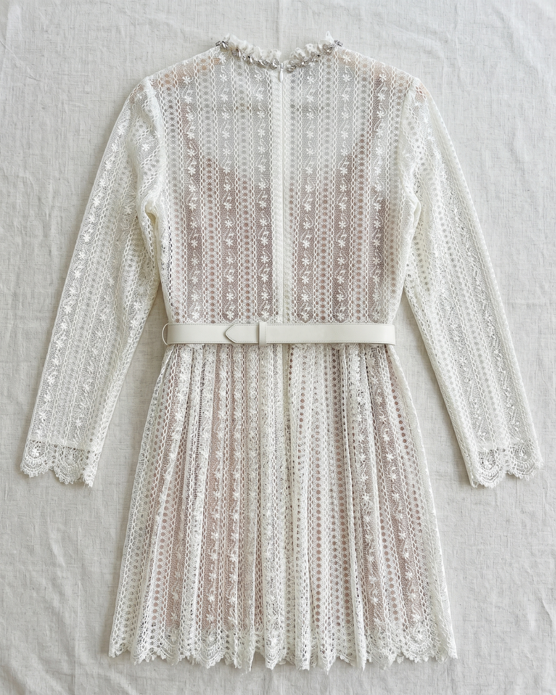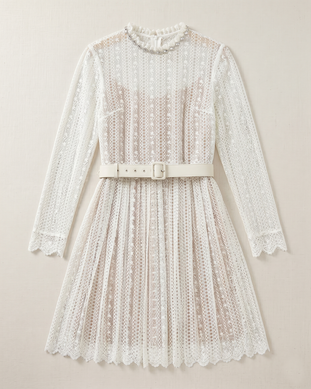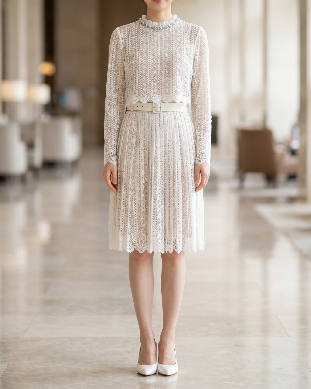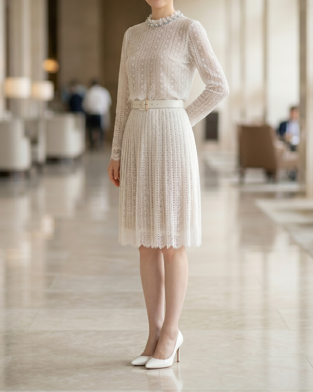 NK558 緹花蕾絲修身連衣裙(連腰帶)