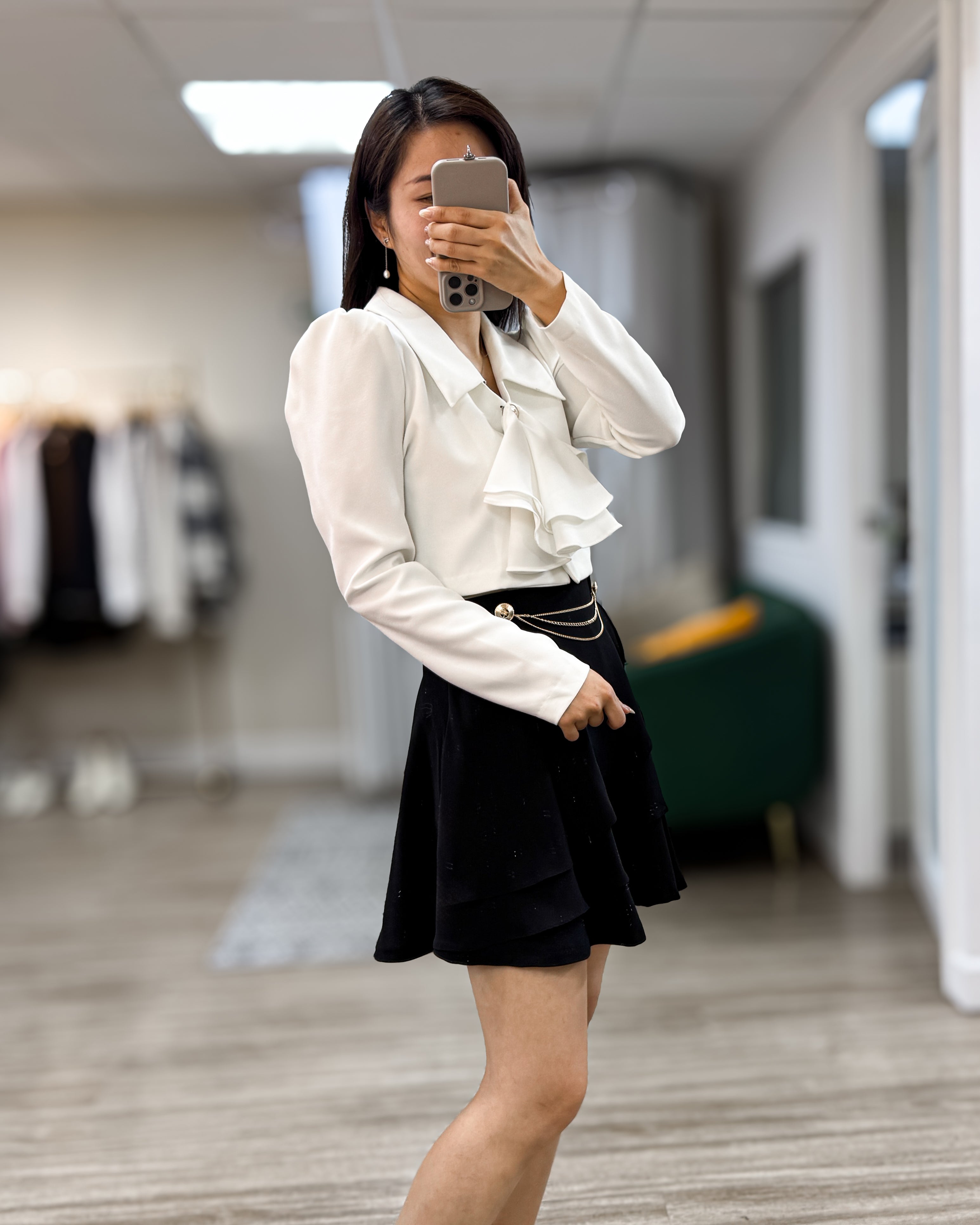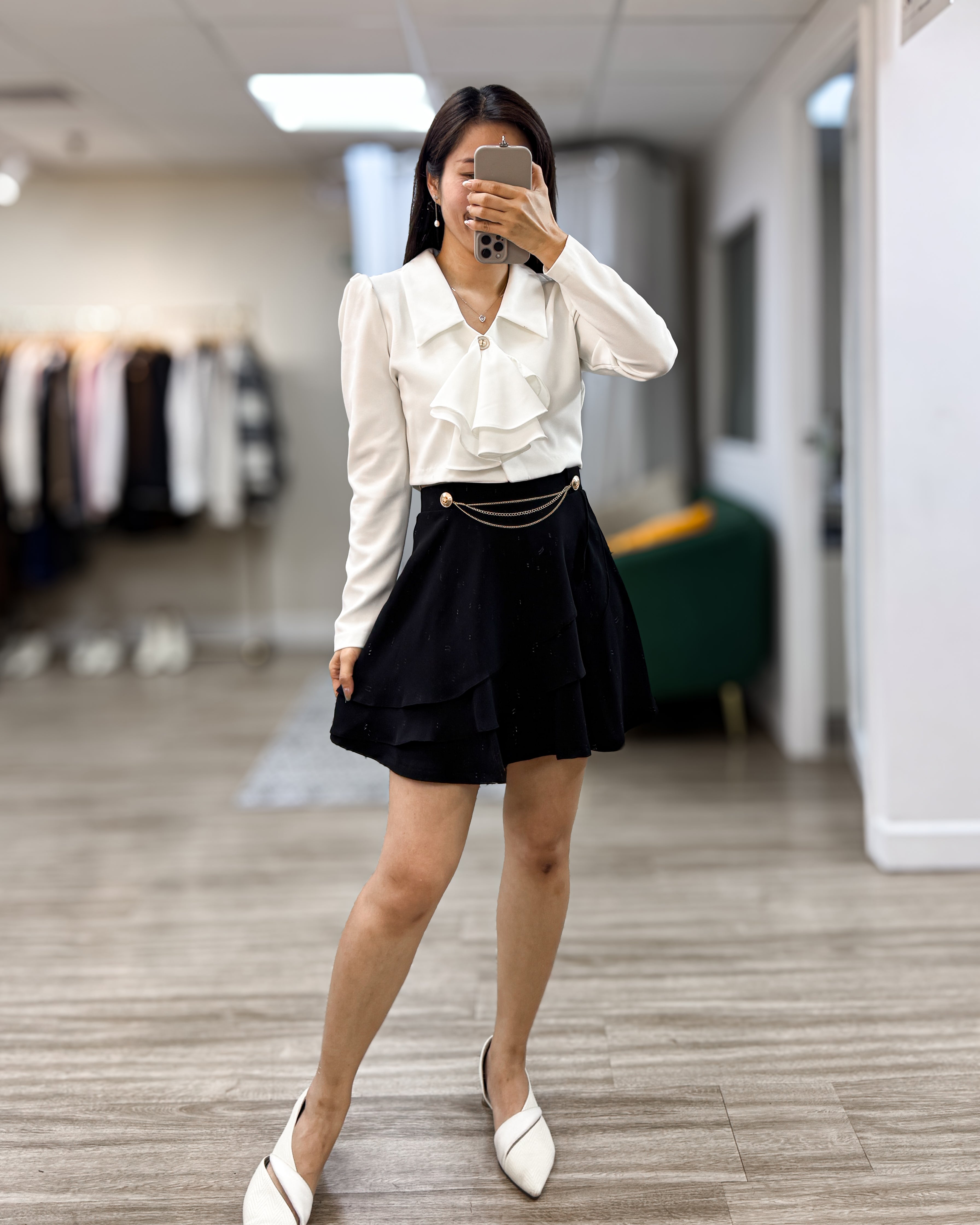 NK425 荷葉領帶短襯衫